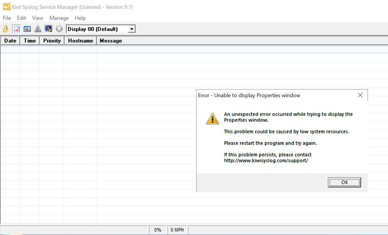 When I try to open the Setup for Kiwi Syslog there is an error that pops up saying that it is unable to display it.