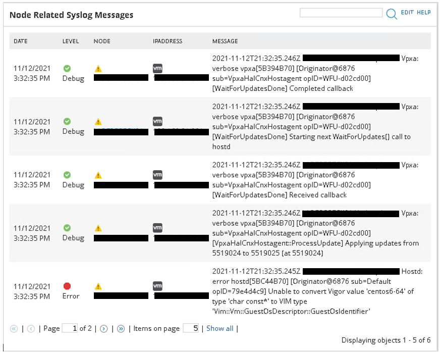 This query will display events from OLV related to the node. This widget can be added to the nodes details.