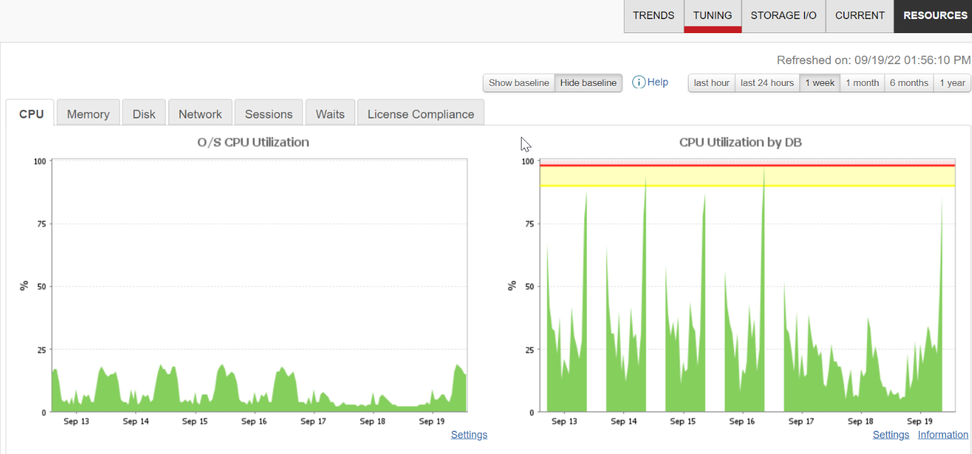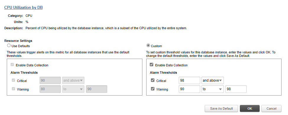 We lost of DPA admin and I am now the DPA admin. I had a user come to me asking why DPA isn't monitoring CPU utilization at a specific time. I went to the chart and when I go to the settings I do not see a setting to check times it is being monitored. Below is a screen shot of what I am seeing.