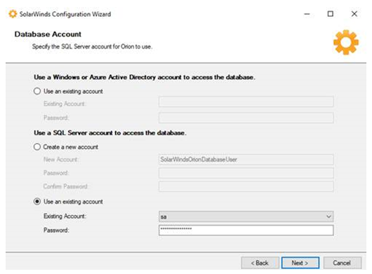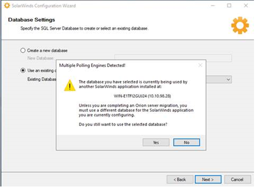 - Run the Configuration Wizard again, pointing to the imported database to upgrade it to the latest Orion version.
