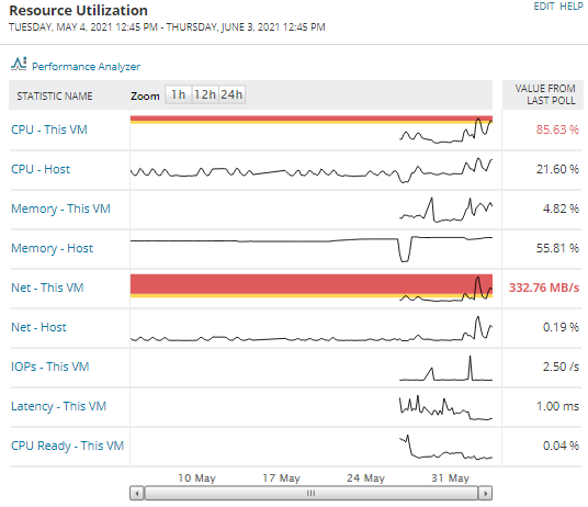 Check out the different between network traffic shown in Perfstack versus the network